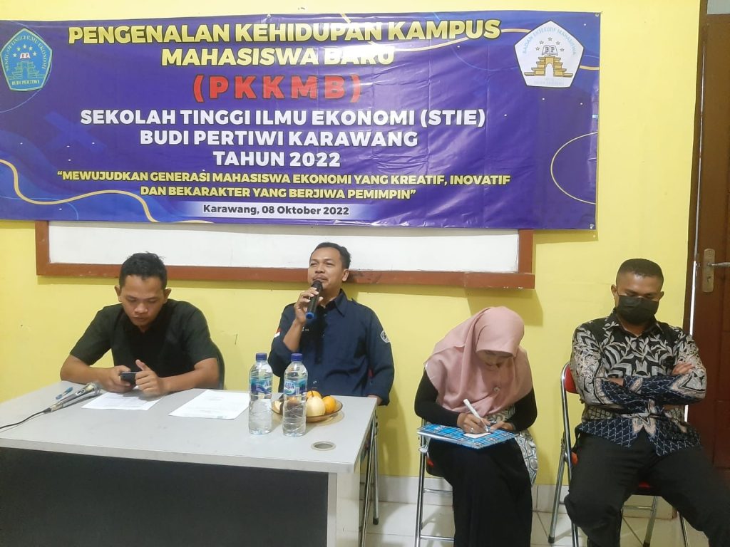 Karawang – Puluhan mahasiswa baru Sekolah Tinggi Ilmu Ekonomi (STIE) Budi Pertiwi Karawang mengikuti kegiatan Pengenalan Kehidupan Kampus Tahun akademik 2022/2023. Sabtu, 8 Oktober 2022 di Kampus Budi Pertiwi Jalan Lingkar Tanjungpura, Desa Kondangjaya, Kecamatan Karawang Timur.