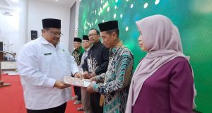 Dalam kesempatannya, Sri Rahayu menyerahkan bantuan alat Qosidah keada ibu ibu majlis Taklim Nurul Iman.(red)
