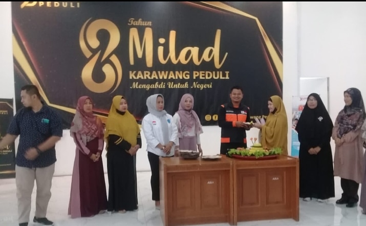 Ketua Panitia Rizki mengatakan, kami mengadakan milad ke -8 tahun dan mengambil tema mengabdi untuk negri, kita ingin menggambarkan Karawang Peduli ini, selama delapan tahun ini melakukan apa saja di Karawang khususnya, Indonesia dan juga Internasional.