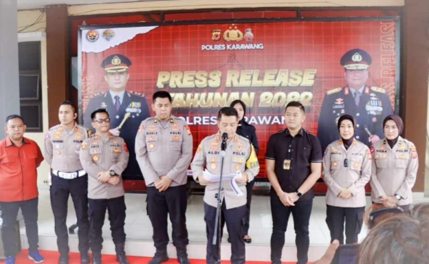 Kapolres Karawang AKBP Aldi Subartono menggelar rilis akhir tahun 2022