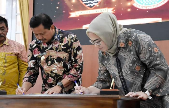 Penandatanganan MoU tersebut dilakukan bersama Bupati Karawang, Cellica Nurrachadiana dengan 3 kabupaten lainnya yang turut dihadiri oleh Bupati Konawe Selatan, Surunuddin Dangga, Bupati Siak, Alfedri, dan Bupati Belitung, Sahani Saleh, di Gedung Negara Kabupaten Sumedang, Kamis (19/1/2023).