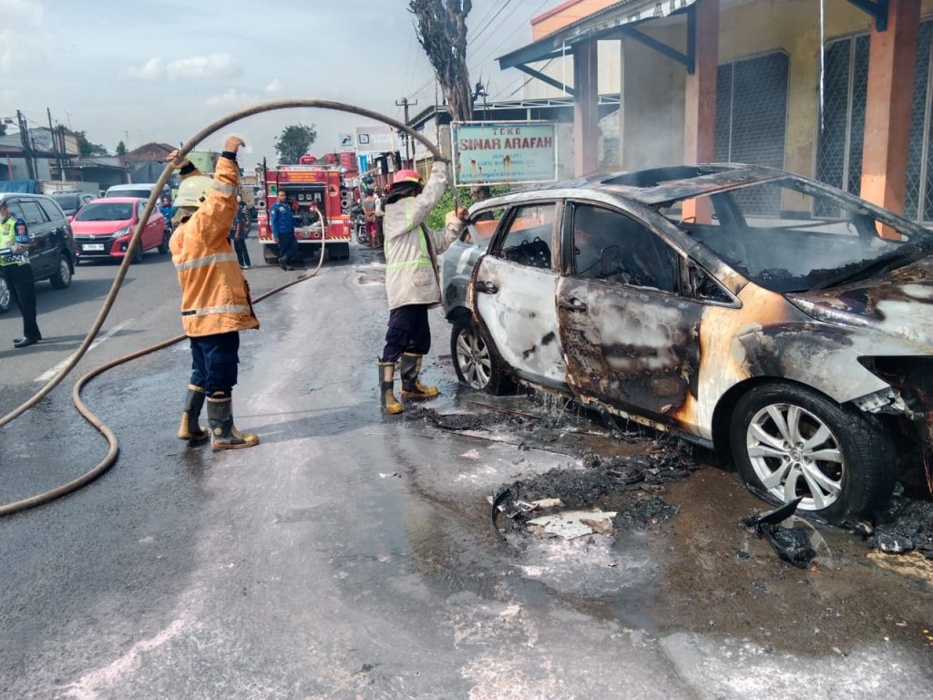 Karawang – Sebuah mobil dengan jenis minibus dengan Plat T 9926 FG di Jalan Pangulah, Desa Pangulah, Kecamatan Kotabaru, Karawang ludes dilalap si jago merah pada Kamis (13/4/2023).