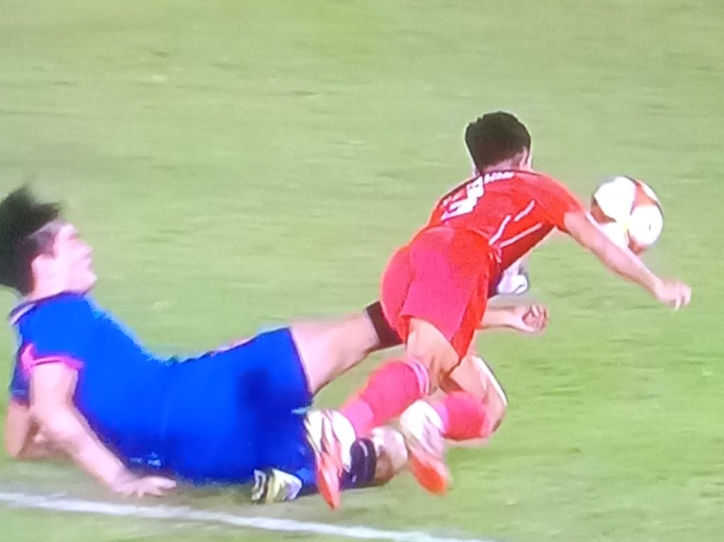 Dalam kondisi tidak siap dengan beberapa pemain berada di pinggir lapangan, sebuah serangan pemain Thailand menghasilkan gol. Kedudukan menjadi imbang 2-2 dan memaksa dilakukan perpanjangan waktu 2X15 menit. Keributan dan baku hantam pemain dan official kedua kesebelasan terjadi karena situasi yang berubah cepat. 2 kartu merah dijatuhkan kepada pemain Indonesia dan kiper Thailand yang terlibat baku hantam. 2 kartu merah lain dijatuhkan wasit kepada masing-official tim Indonesia dan Thailad.