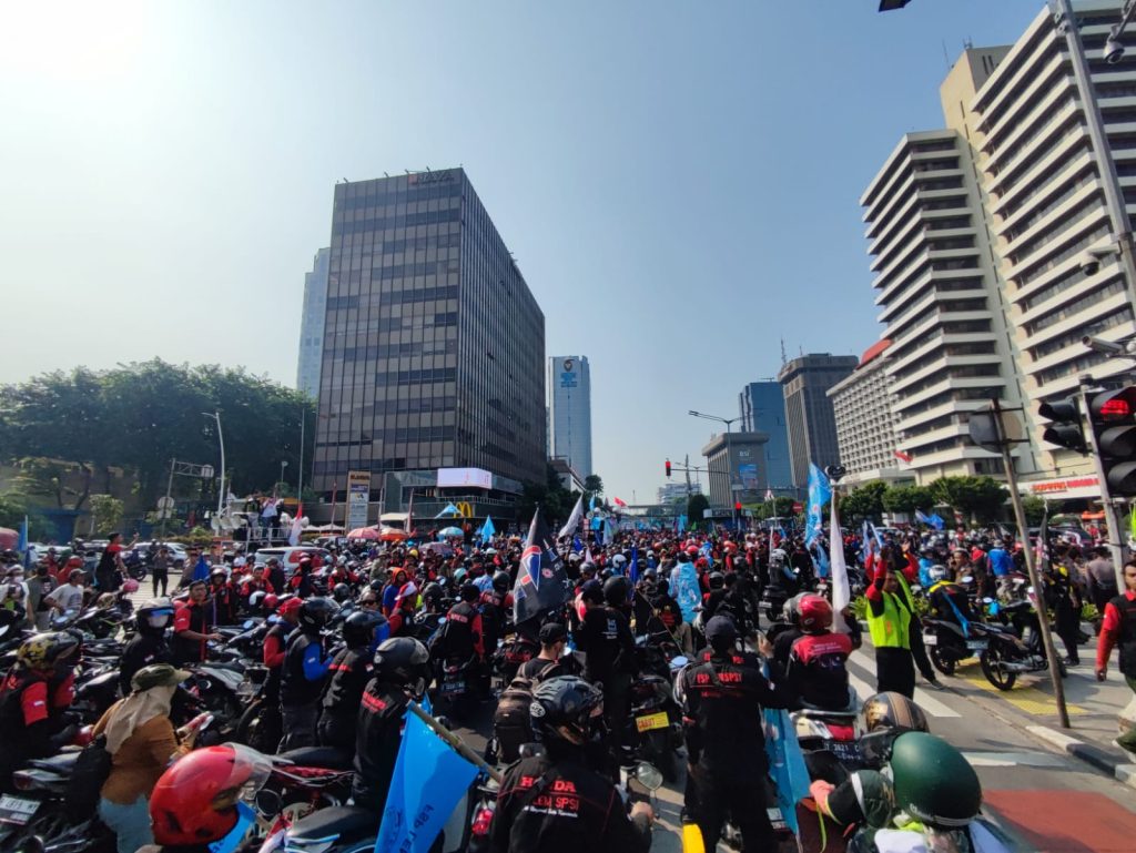Faktajabar.co.id – Sejuta massa aksi yang tergabung dalam Aliansi Aksi Sejuta Buruh (AASB) menggelar unjuk rasa di depan Istana Kepresidenan RI, Jakarta, pada hari ini, Kamis, (10/8/2023).