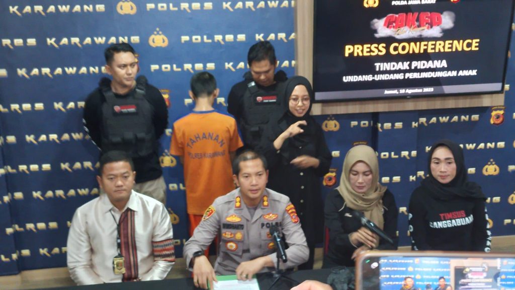Karawang – Polres Karawang Polda Jabar menggelar konferensi pers tindak pidana pencabulan terhadap anak di bawah umur. Kegiatan tersebut digelar di halaman Mapolres Karawang, Jumat (18/08/2023) Pagi.