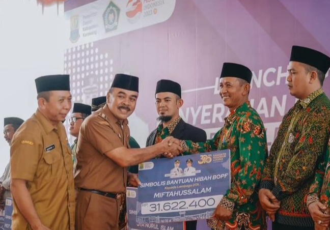 Karawang – Pemda Karawang secara simbolis memberikan hibah Bantuan Operasional Perawatan dan Fasilitas Pendidikan bagi Diniyah Takmiliyah Awaliyah (DTA) bertempat di Kecamatan Rengasdengklok, Senin 11 September 2023.