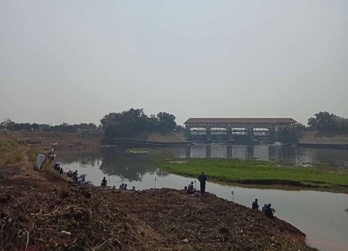 Nampak ratusan pecinta mancing mania berjejer di bibir sungai Citarum untuk mengikuti gelaran lomba mancing ikan Endemik, bertempat di Bendungan Walahar, Klari, Karawang. Sabtu (16/9/2023).