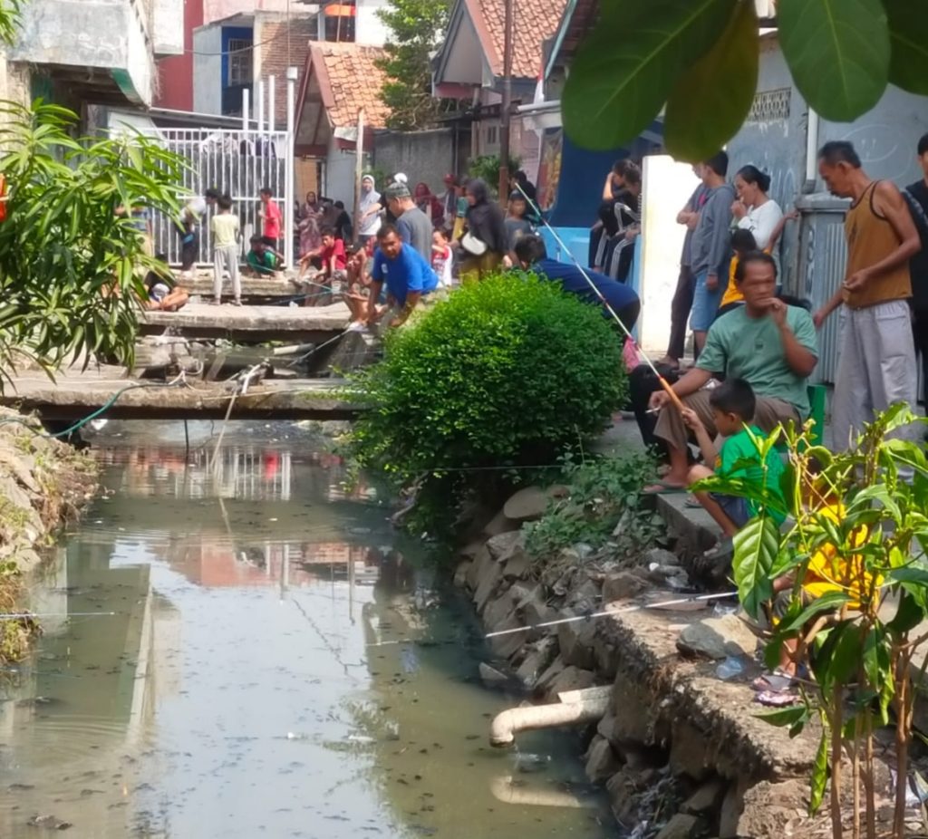 Pemadangan tersebut masih terlihat pada minggu pagi ( 17/09/23). Warga sekitar antusias memancing ikan lele yang di tebar di saluran tersebut dengan peralatan sederhana.