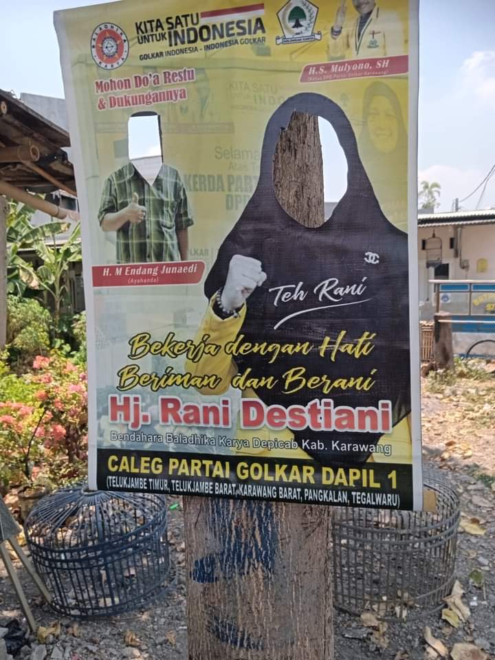Baliho yang dirusak  itu milik caleg DPRD Kabupaten Karawang dari Partai  Golkar No. Urut 3 Dapil 1, Hj. Rani Destiani. Nampak dalam APK yang terpampang, baligo bergambar wajah Rani dan gambar wajah H Endang (Ayah Rani)  di bolongi oleh pelaku yang tak bertanggung jawab.