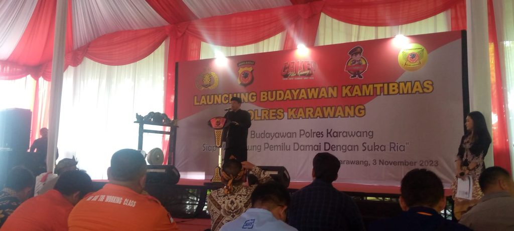 Karawang – Polisi melibatkan budayawan di Kabupaten Karawang untuk pengamanan dan mencegah gangguan kamtibmas saat Pemilihan Umum (Pemilu) 2024 di tingkat wilayah terkecil.