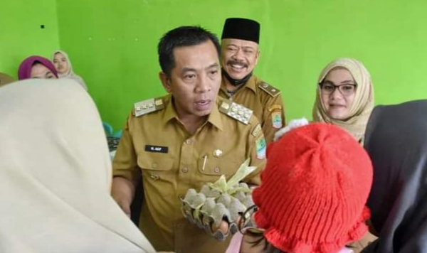 Haji Aep Salurkan Telur BAAS di Kecamatan Ciampel