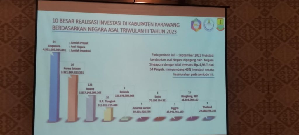 Karawang – Kenaikan nilai investasi di Kabupaten Karawang membawa dampak positif bagi semua sektor yang ada. Kepala Dinas Penanaman Modal dan Pelayanan Terpadu Satu Pintu, Eka Sanatha menyampaikan Kabupaten Karawang mempunyai posisi yang strategis. Hal ini berdampak pada adanya peningkatan jumlah proyek strategis yang diberikan oleh pemerintah pusat. Proyek tersebut mulai dari Stasiun kereta api cepat hingga pembangunan bandara.