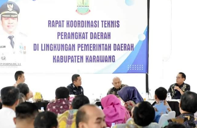 Karawang – Bupati Karawang H. Aep Syaepuloh memimpin langsung Rapat Koordinasi Teknis Perangkat Daerah dan Kecamatan se-Kabupaten Karawang yang dilaksanakan di Galery Bale Indung Nyi Pager Asih, Kamis (11/1/2024).