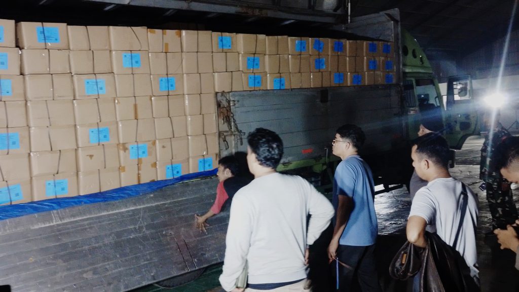 Karawang – Komisi Pemilihan Umum (KPU) Kabupaten Karawang, kembali menerima logistik Pemilu 2024 berupa jutaan lembar kertas surat suara di tingkat DPR-RI dan DPRD Provinsi Jabar. Dengan demikian, logistik kertas surat suara di Pemilu 2024 ini telah rampung diterima oleh pihak penyelenggara pemilu setempat di Gudang Logistik KPU Kabupaten Karawang.
