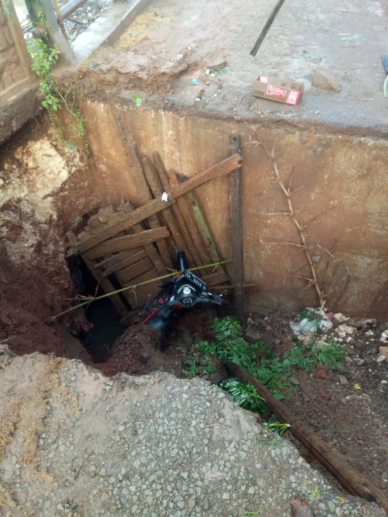 Ia mengaku kaget saat melintas tiba-tiba jembatan ambrol. Alhasil, ia terporosok ke lubang jalan ambrol itu dengan kedalaman perkiraan 2 meter dan panjang 3 meter.