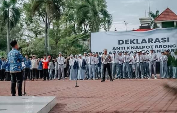“Jadi jangan sampai nih nanti saya dengar adik-adik (pelajar yang hadir dalam deklarasi anti knalpot brong) kena razia knalpot brong. Nanti sampaikan juga ke temen-temen yang lain jangan pakai knalpot brong,” kata Bupati.