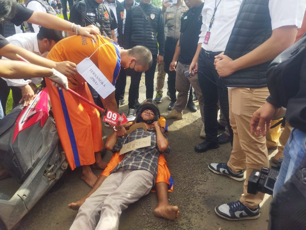 Kasatreskrim Polres Karawang AKP Abdul Jalil mengungkapkan, sebanyak 15 peragaan adegan dimana pelaku PD menelepon korban untuk menjemput di lokasi kejadian dengan beralasan motor mogok. Akan tetapi pada saat korban tiba di lokasi di minta untuk menyetep motor pelaku PD dan pelaku RZ yang dibonceng oleh korban tiba-tiba menusuk leher korban.