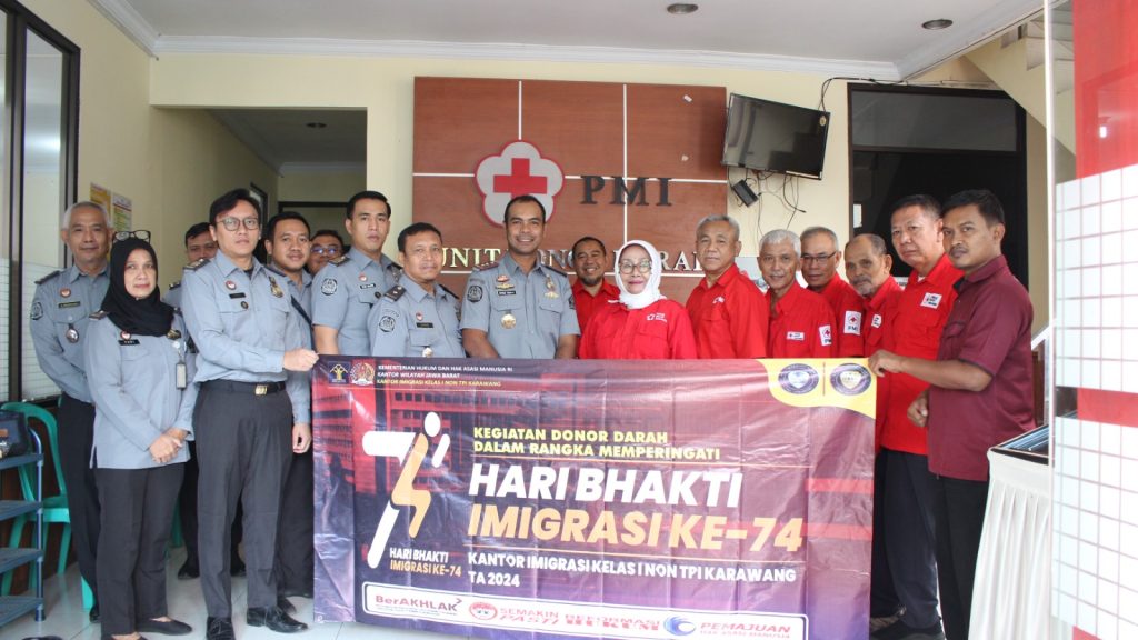 Faktajabar.co.id – Dalam rangka menyambut Hari Bhakti Imigrasi (HBI) yang ke-74 pada 26 Januari mendatang, Kantor Imigrasi Kelas I Non TPI Karawang menggelar kegiatan donor darah di Markas Palang Merah Indonesia (PMI) Kabupaten Karawang, Selasa (23/01).