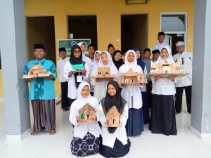 Karawang – Siswa SMP IT Ar-Roudhoh memanfaatkan bahan bekas untuk diolah menjadi karya rumah adat.