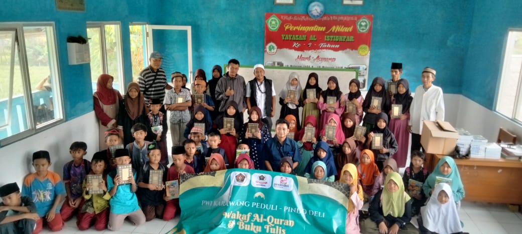 Persatuan Wartawan Indonesia Karawang Peduli melakukan kegiatan berbagi Al-Qur’an dan buku tulis kepada Yayasan Al-Istighfar