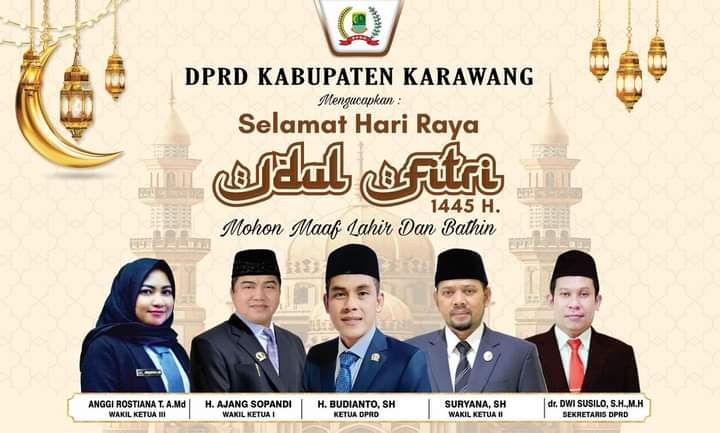 Oleh karena itu, pimpinan DPRD Kabupaten Karawang mengucapkan selamat Hari Raya Idul Fitri 1 Syawal 1445 Hijriah Tahun 2024.