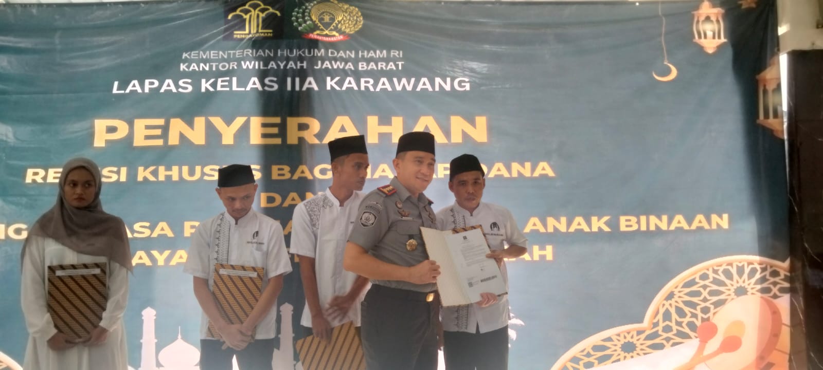 Karawang – Sebanyak 835 WBP Warga Binaan Lapas Kelas IIA Karawang yang beragama Islam menerima Remisi Khusus Idul Fitri 1445 H, pada Rabu, (10/04/2024).