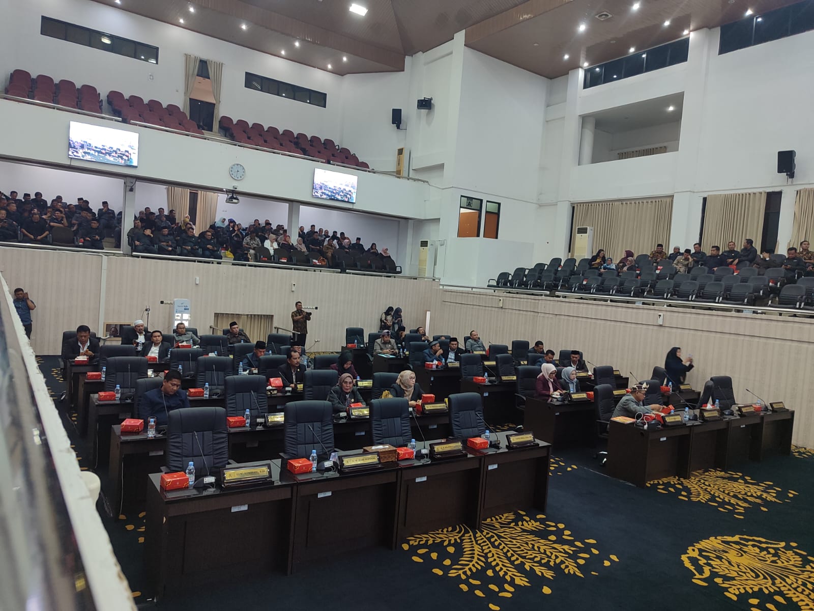 Karawang – Sidang Paripurna DPRD Kabupaten Karawang dengan agenda penetapan Laporan Keterangan Pertanggungjawaban (LKPJ) Bupati Karawang tahun 2023 dihujani intrupsi dari para legislator.