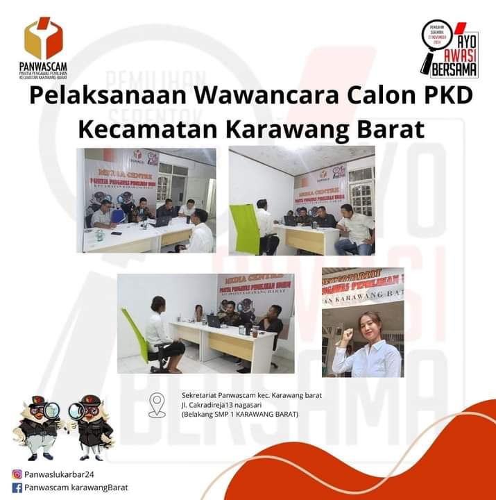 “Maka itu, hari ini kami (Panwascam Kecamatan Karawang Barat) melakukan tahap tes wawancara untuk calon PKD di Karawang Barat,” kata Heru.