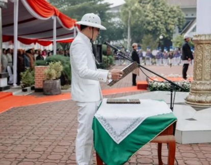 Dalam moment hari lahir Pancasila Ketua DPRD menggunakan setelan pakaian bernuansa khas Pejuang.