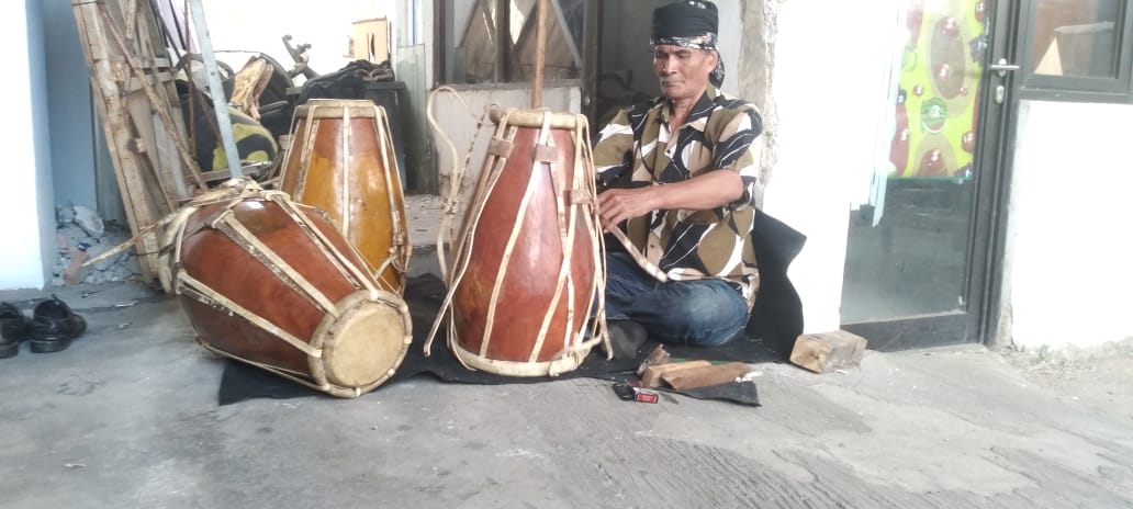 KARAWANG – Berawal dari pelaku seni, namun akibat kurangnya pementasan Apen memilih cara bertahan hidup dengan membuat alat musik tradisional gendang