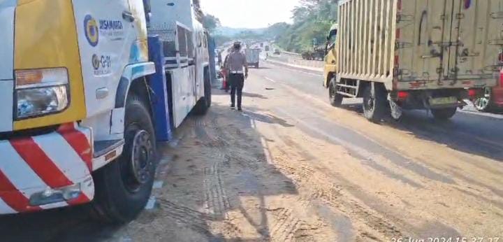 Faktajabar.co.id – Telah terjadi kecelakaan di KM 111+800 Ruas Tol Cipularang arah Jakarta pada Rabu 26 Juni 2024 pukul 14.08 WIB. Kecelakaan ini melibatkan sebuah truk yang terguling dan menutupi badan jalan, sehingga untuk sementara tidak dapat dilalui. Terkait penyebab kecelakaan sampai dengan saat ini masih ditangani oleh Pihak Kepolisian.