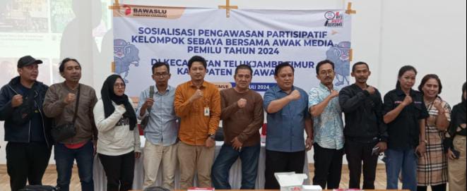 Karawang – Badan Pengawas Pemilu (Bawaslu) Kabupaten Karawang melalui Panwaslu Kecamatan Telukjambe Timur mengadakan sosialisasi pengawasan perspektif kelompok sebaya bersama awak media untuk Pemilu 2024.