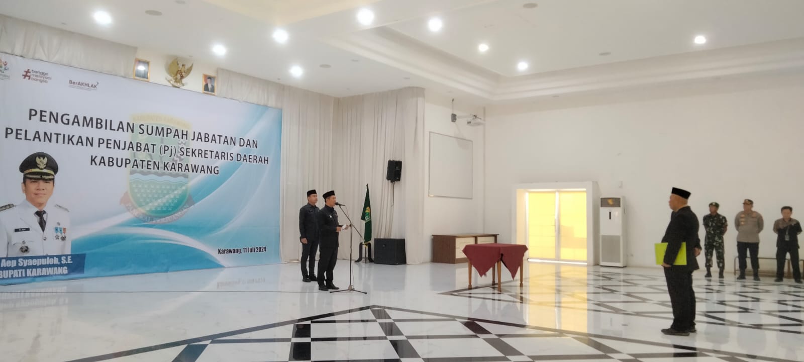 Pada Kamis (11/7) dilaksanakan pengambilan sumpah jabatan dan pelantikan Pelaksana Jabatan (PJ) Sekretaris Daerah Karawang. Bupati Karawang, Aep Syaepuloh menyampaikan pelantikan ini dilakukan setelah adanya pengunduran diri dari Acep Jamhuri sebagai Aparatur Sipil Negara (ASN). Ketika menerima surat pengunduran diri tersebut tidak memberikan kesulitan apapun.
