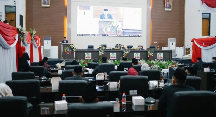Paripurna DPRD Karawang mendengarkan pidato kenegaraan HUR RI ke-79