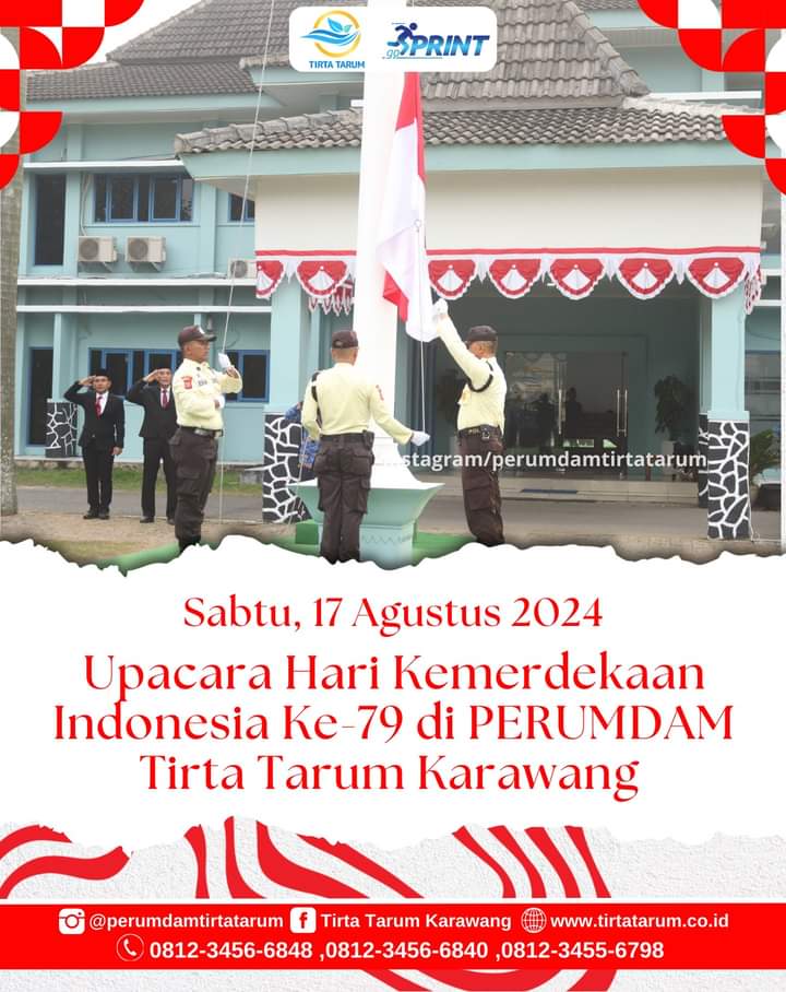 Dipimpin oleh Direktur Utama Perumdam Tirta Tarum bendera dengan penuh khidmat. Acara ini dilaksanakan untuk meneguhkan rasa nasionalisme serta menghargai perjuangan para pahlawan bangsa. Seluruh jajaran direksi dan karyawan Perumdam Tirta Tarum Karawang turut serta dalam upacara ini, yang diwarnai dengan pembacaan teks proklamasi, penyerahan bendera merah putih, serta sambutan dari Bupati Karawang H Aep Syaepuloh.,SE yang disampaikan oleh Direktur Utama Perumdam.