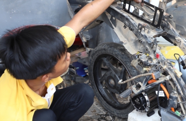 Sejumlah siswa otomotif dikerahkan dalam proses konversi motor tersebut. Para siswa ini mengubah mesin motor dan merangkai teknologi motor listrik.