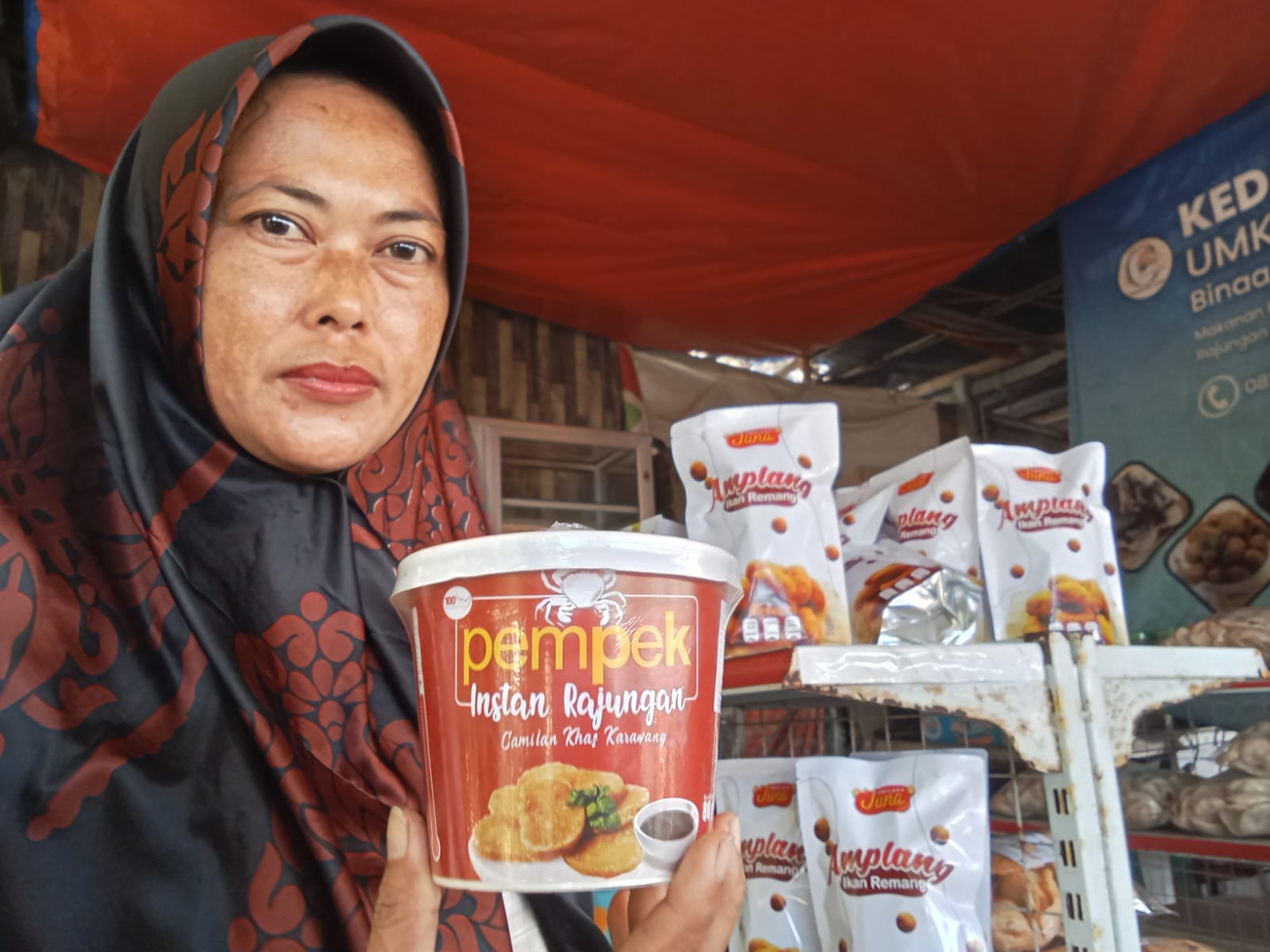 Ketua UMKM Gapoktan Pantai Barokah, Iin Inani (41), mempunyai usaha pempek rajungan, dari mulai jualan keliling sampai dibina PHE ONWJ lalu membuat kemasan dan bisa dijual di berbagai outlen. Kini menghasilan Iin meingkat dari sebelumnya. Produk Iin, disimpan di outlet oleh-oleh di tempat wisata hutan mangrove.