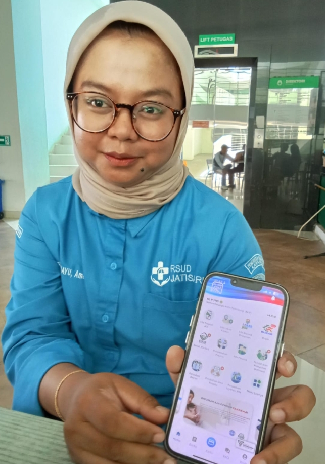 Petugas Pelayanan Informasi RSUD Jatisari, Putri Dwi Rahayu, Amd mengatakan, pelayanan online sangat efektif. Masyarakat bisa mendaftar di rumah, sehingga mengetahui jadwal antrean yang sudah disiapkan.