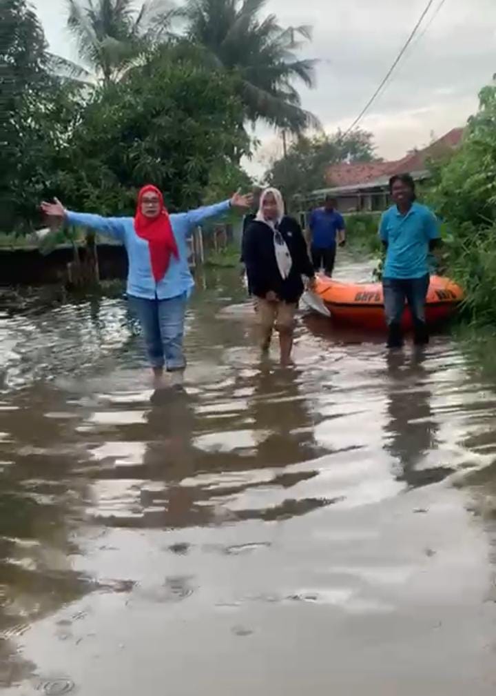 Sambil membawa bantuan sembako, Sri yang tinggal menunggu waktu dilantik menjadi anggota DPRD Jawa Barat periode 2024-2029 ini menyapa warga korban banjir dan menyempatkan diri melihat sejumlah rumah yang terendam menggunakan perahu karet.