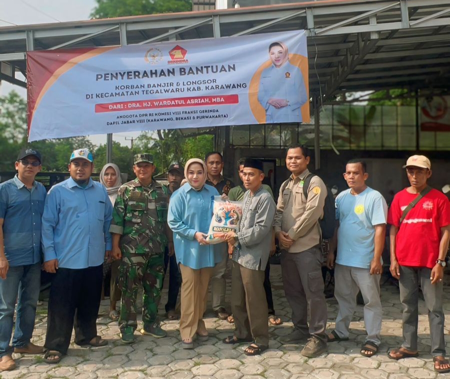 Anggota DPR RI Dra.Hj Wardatul Asriah,MBA menyerahkan bantuan pada masyarakat di Kecamatan Tegalwaru