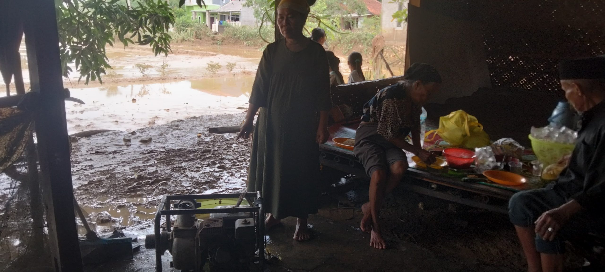 Di dalam rumahnya terlihat ada tumpukan sebanyak 40 karung beras yang siap di jual, namun mengalami kerusakan. Ia menambahkan dari total karung, hanya ada setengah karung yang dapat terselamatkan. Selain itu terlihat juga perabotan rumah yang berserakan dan banyak lumpur, serta listrik di rumahnya pun saat ini masih dalam kondisi padam.