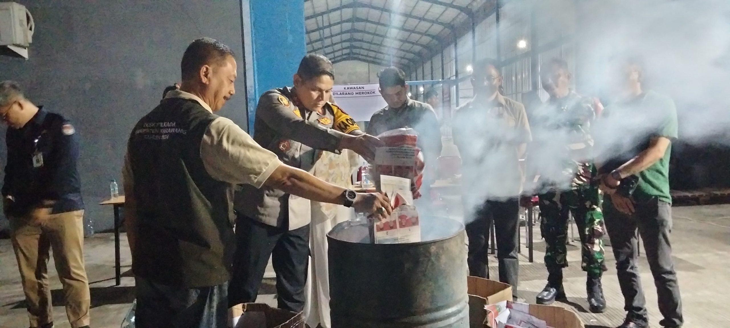 “KPU Kabupaten Karawang melaksanakan pemusnahan kelebihan surat suara yang rusak. Kelebihan surat suara untuk pemilihan gubernur dan wakil gubernur itu 1.554 serta bupati dan wakil bupati ada 1.982 lembar. Sebelum prosesi dimulai, dilakukan perhitungan ulang untuk menyesuaikan dengan jumlah yang ada di berita acara dan meyakinkan seluruh pihak. Kondisi per hari ini di dalam gudang tidak ada surat suara apapun lagi,” ujarnya
