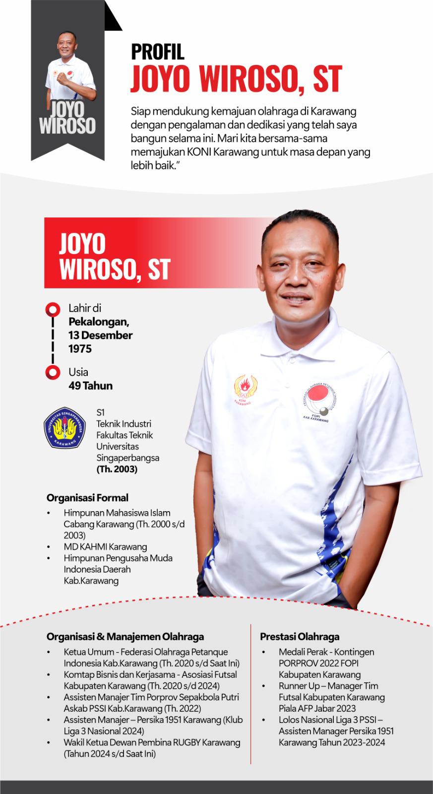 KARAWANG – Calon Ketua KONI Karawang Joyo Wiroso ST membeberkan sejumlah program prioritas tatkala dirinya dipercaya dan terpilih sebagai orang nomor satu di lembaga pembinaan olahraga tersebut.