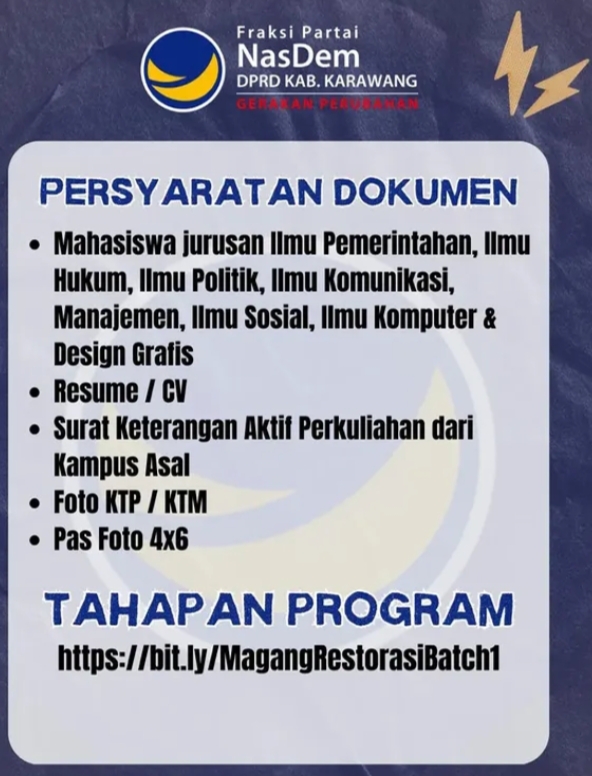 KARAWANG – Wakil Ketua II DPRD Karawang, Dian Fahrud Jaman membuka rekrutmen magang bagi para mahasiswa yang ingin mempelajari dinamika politik lokal.