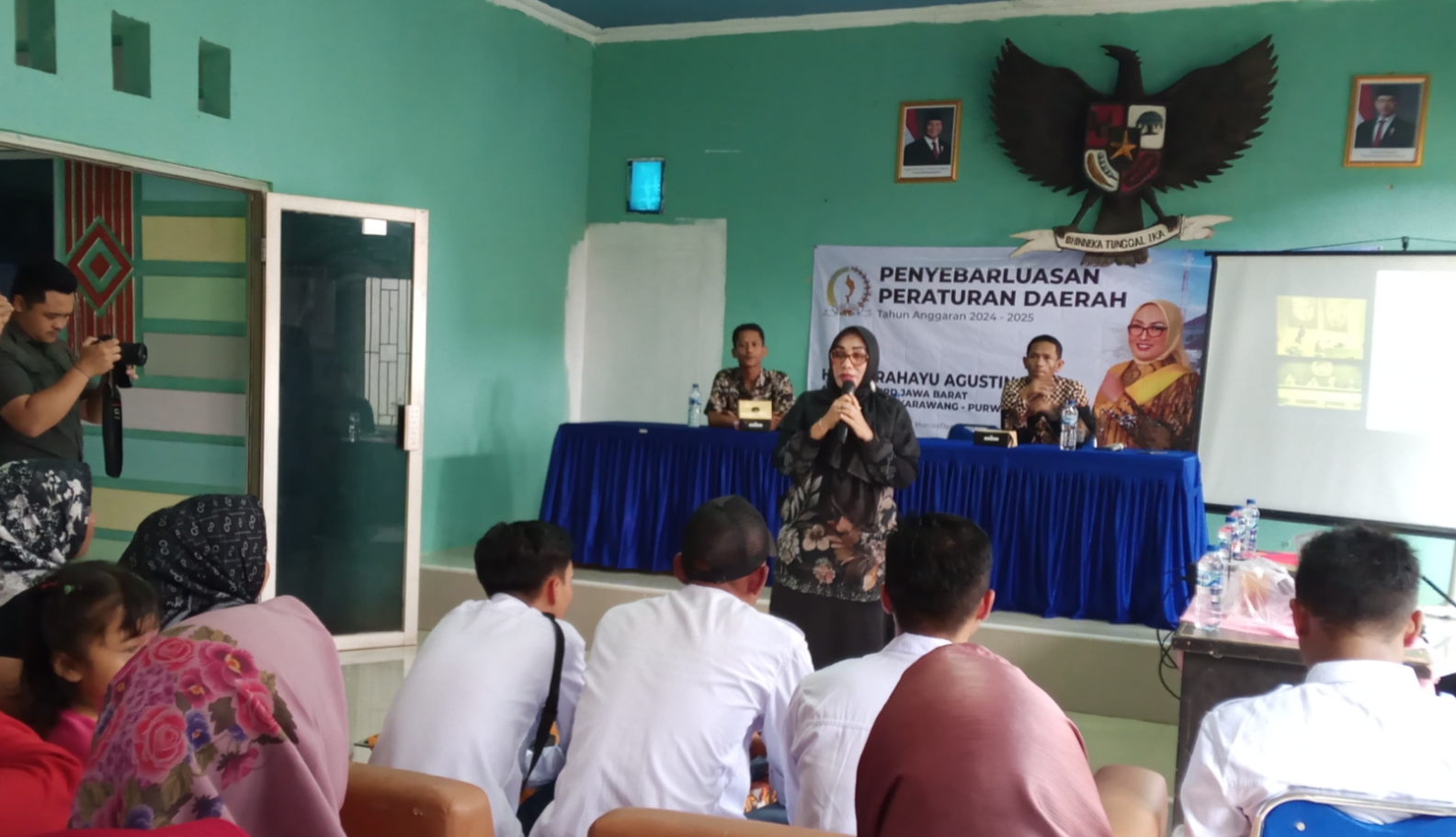 Karawang – Anggota Komisi I DPRD Provinsi Jawa Barat Daerah Pemilihan (Dapil) X Hj.Sri Rahayu gelar Sosialisasi Peraturan Daerah ( Sosper ) di Aula Kator Kepala Desa Cilewo, Kecamatan Telagasari, Kabupaten Karawang.