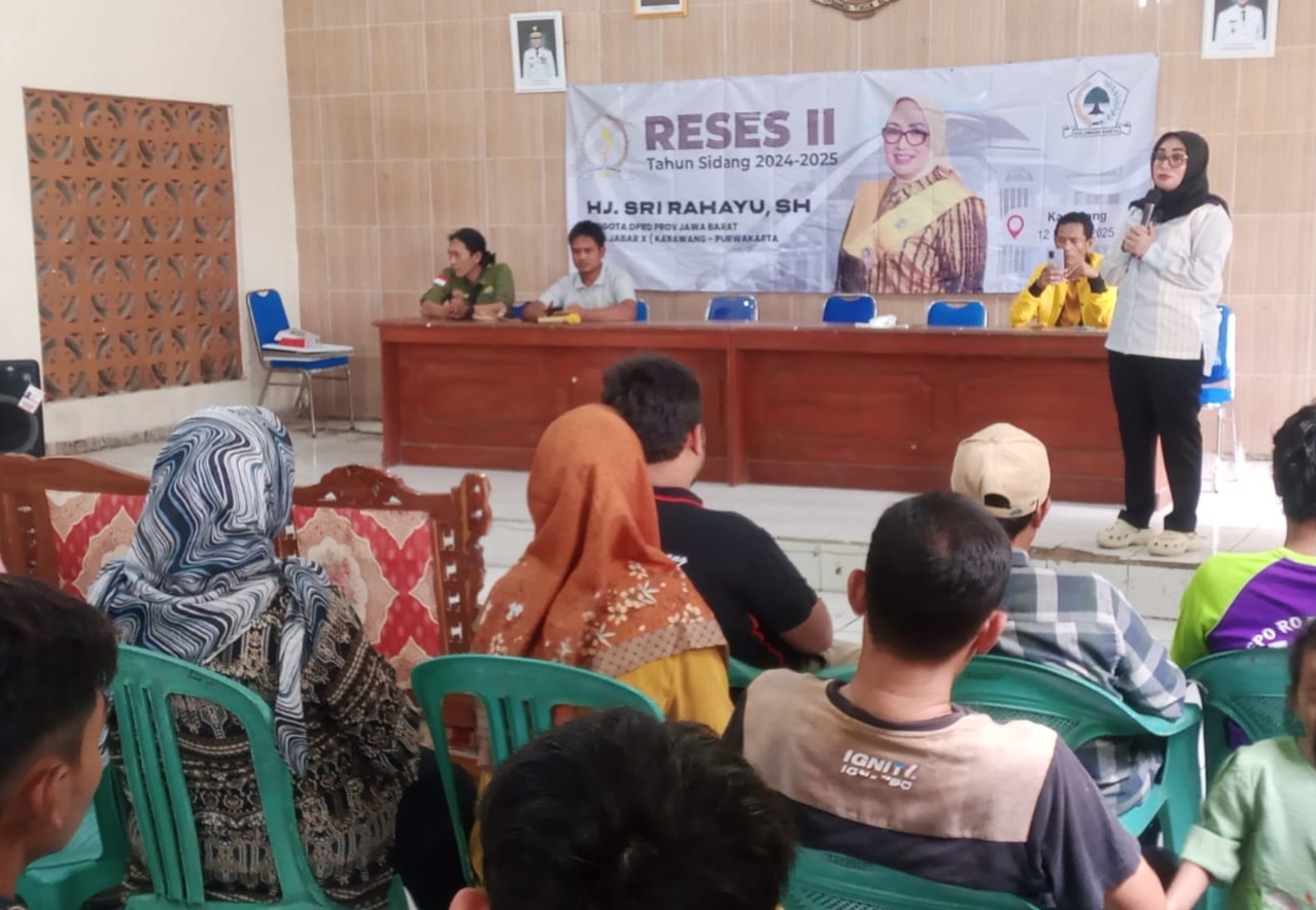 Karawang – Anggota Komisi I DPRD Provinsi Jawa Barat, Fraksi Golkar Hj.Sri Rahayu.SH menggelar reses II tahun sidang 2024 – 2025, untuk menampung aspirasi masyarakat serta menyampaikan program dan visi misi Gubernur Jawa Barat.