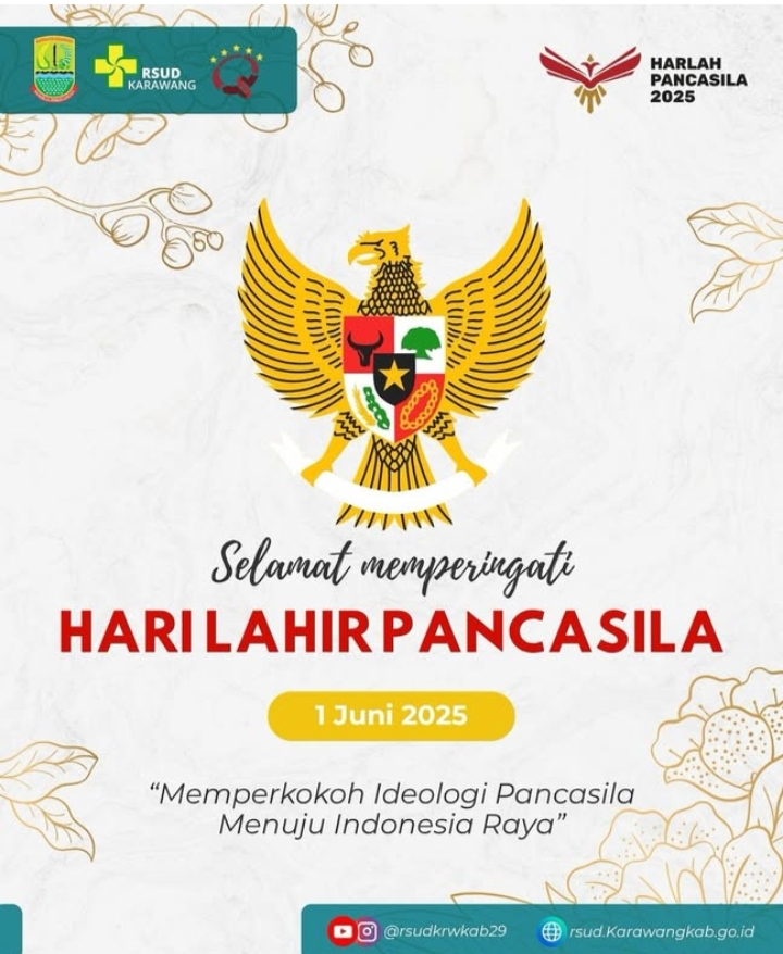 Jajaran Direksi dan Karyawan Rumah Sakit Umum Daerah (DPRD) Kabupaten Karawang mengucapkan selamat hari lahir Pancasila 1 Juni Tahun 2025.