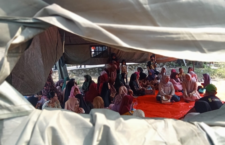 Anggota DPRD Jawa Barat Hj Sri Rahayu Agustina,SH berdialog dengan warga terdampak gempa di Karawang