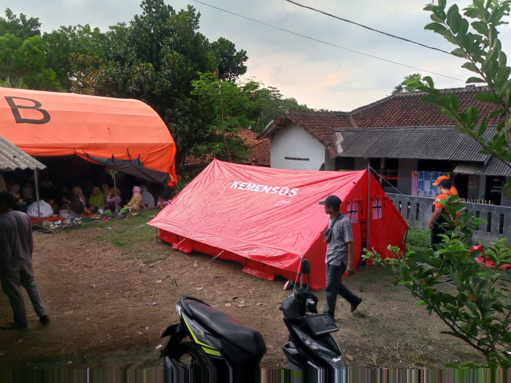 Dalam kesempatan itu juga, dari pihak TAGANA Dinas Sosial Karawang memberikan bantuan berupa 6 unit Tenda family untuk di pergunakan oleh masyarakat yang terdampak.