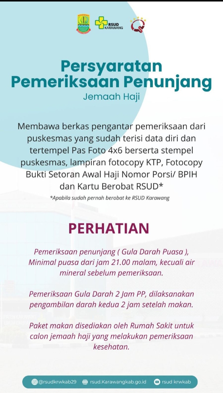 Rumah Sakit Umum Daerah (RSUD) Kabupaten Karawang melayani pemeriksaan kesehatan jemaah haji Indonesia tahun 2026.